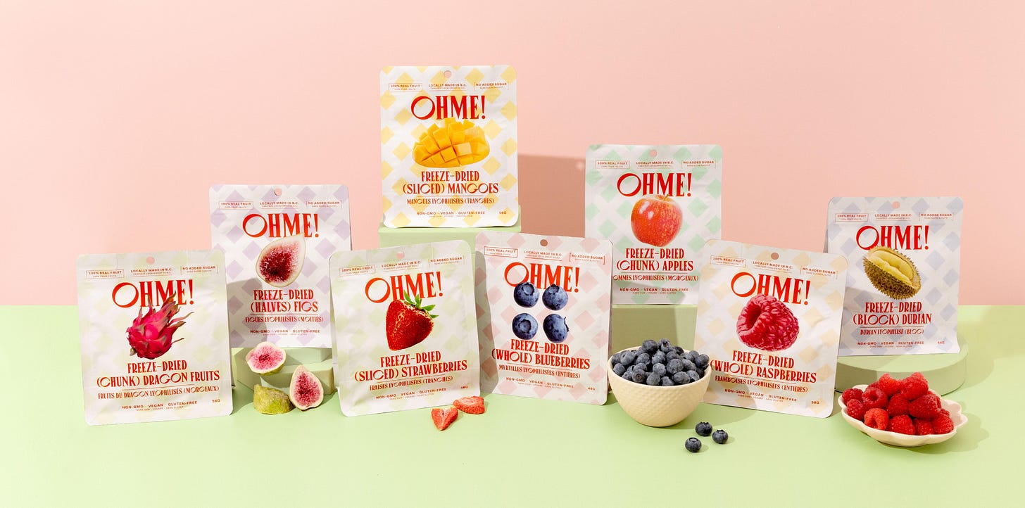 Founded in 2023, the company’s freeze-dried snacks use fruits and yogurts from farms across B.C. They’re also made in small batches to ensure every bag “tastes fresh and real.” No added sugar, artificial colors, or preservatives.