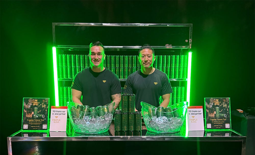 That idea? Triple X.O.G., the world’s first ready-to-drink (RTD) cocktail of its kind, ranked among the top sellers in B.C. It blends French cognac, jasmine green tea, and Canadian honey with light carbonation. At 5% ABV, Triple X.O.G. was crafted to offer both an elevated and accessible beverage for any occasion—from intimate gatherings to public events—and to cater to a spectrum of palates: those who seek depth of flavour or lean toward something lighter. Finding that middle ground was crucial, as it reflects the founders’ different preferences.