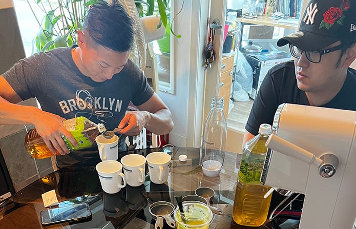 Chen and Pham were then referred to a formulator to develop the recipe. They went through several rounds where they were given four to five samples and a list of questions, like what they liked or didn’t like, and whether they wanted the tea to be stronger at the beginning or end of the sip. There were times when they’d share samples with friends who all had different opinions. But after 35 iterations, they decided to go with the version they were aligned on and intuitively felt was right.